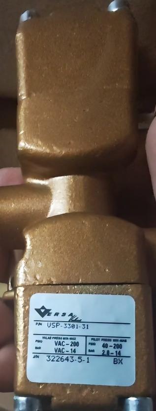 The VERSA VZL 270982-9-1 is a high-performance pneumatic directional valve from VERSA's industrial valve series. This 3-way valve (model USP-3301-31) belongs to the same technical family as VZL-3301, designed for demanding pneumatic systems with robust pressure handling capabilities.